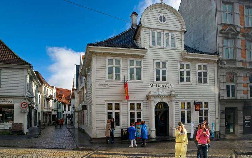 Paris, capitala fashion, orasul luminilor sau al romanticilor… Cum era de asteptat, aspectul restaurantului McDonalds de pe Rue Saint-Lazare este usor vintage, cu accente pariziene foarte bine conturate. Mai, mai, ca ai sentimentul ca te afli la o cafenea tipic pariziana…doar ca aici poti comanda si BicMac. In Bergen, McDonalds isi serveste meniurile intr-un ambient de asemenea aparte. Cat despre meniuri, nici ele nu sunt de ignorat. Ramurile norvegiene ofera de obicei McLaks – file de somon indesat intr-un sandvis. Asa zona, asa meniu.